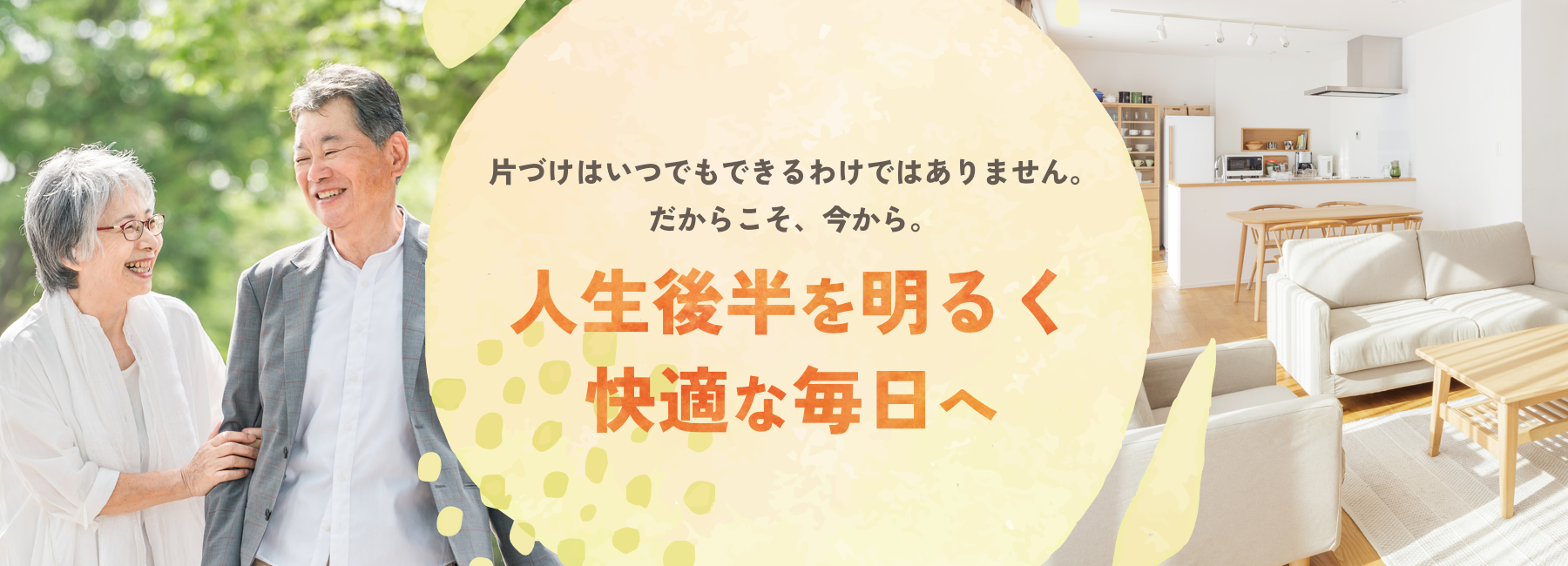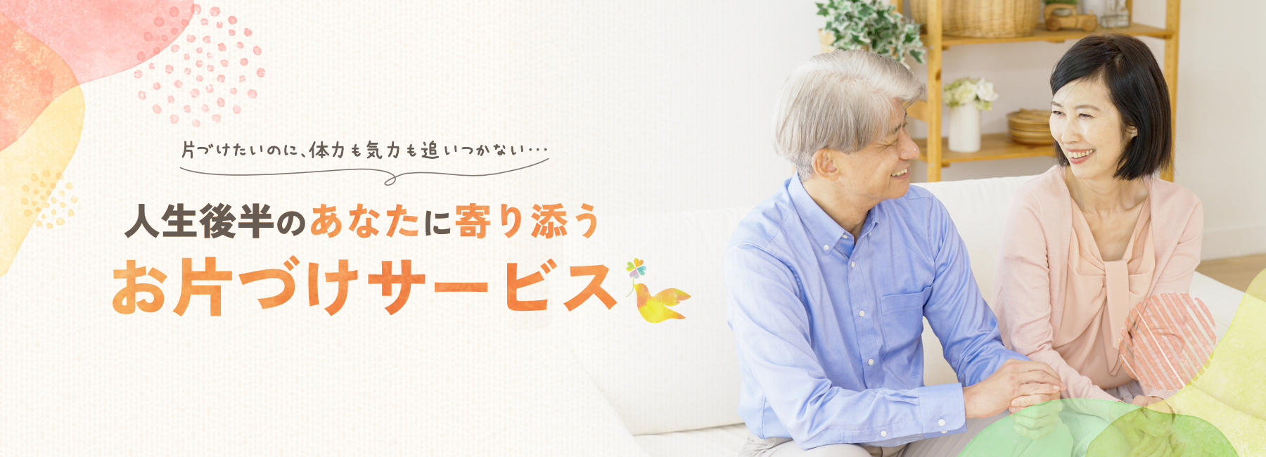 人生後半を生きる方が、ご自宅を片づけることで、明るく快適な毎日を送っていただけるよう、心を込めてお手伝いをさせていただきます。